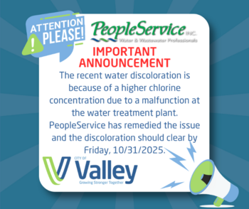 If you haven't already, don't forget to download the City of Valley app! Pay your utility bill, see our Facebook page, report citizen concerns, and more. Download for iPhone or Android.